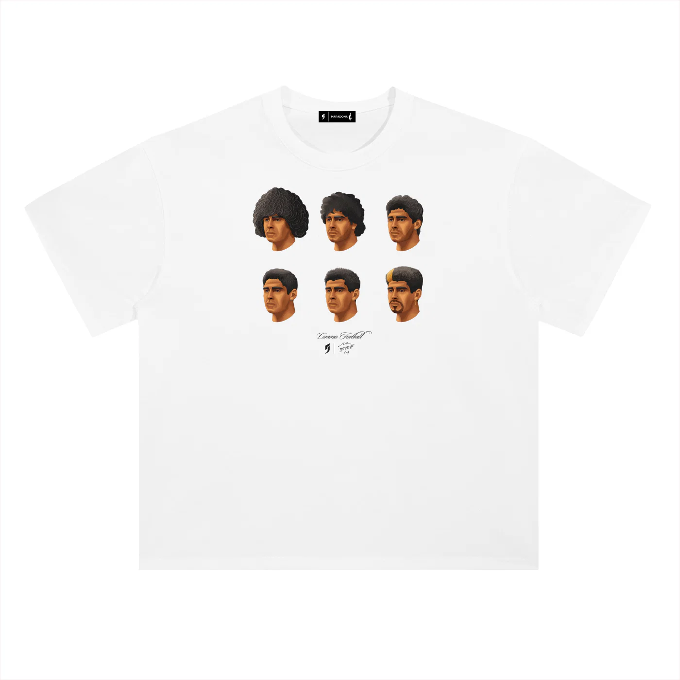 From curls to cuts. The iconic hairstyles of Diego Armando Maradona, all on one tee.